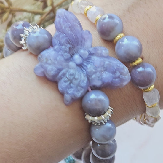 2-Piece Bracelet Combo – Kunzite & Purple Mica Butterfly Set