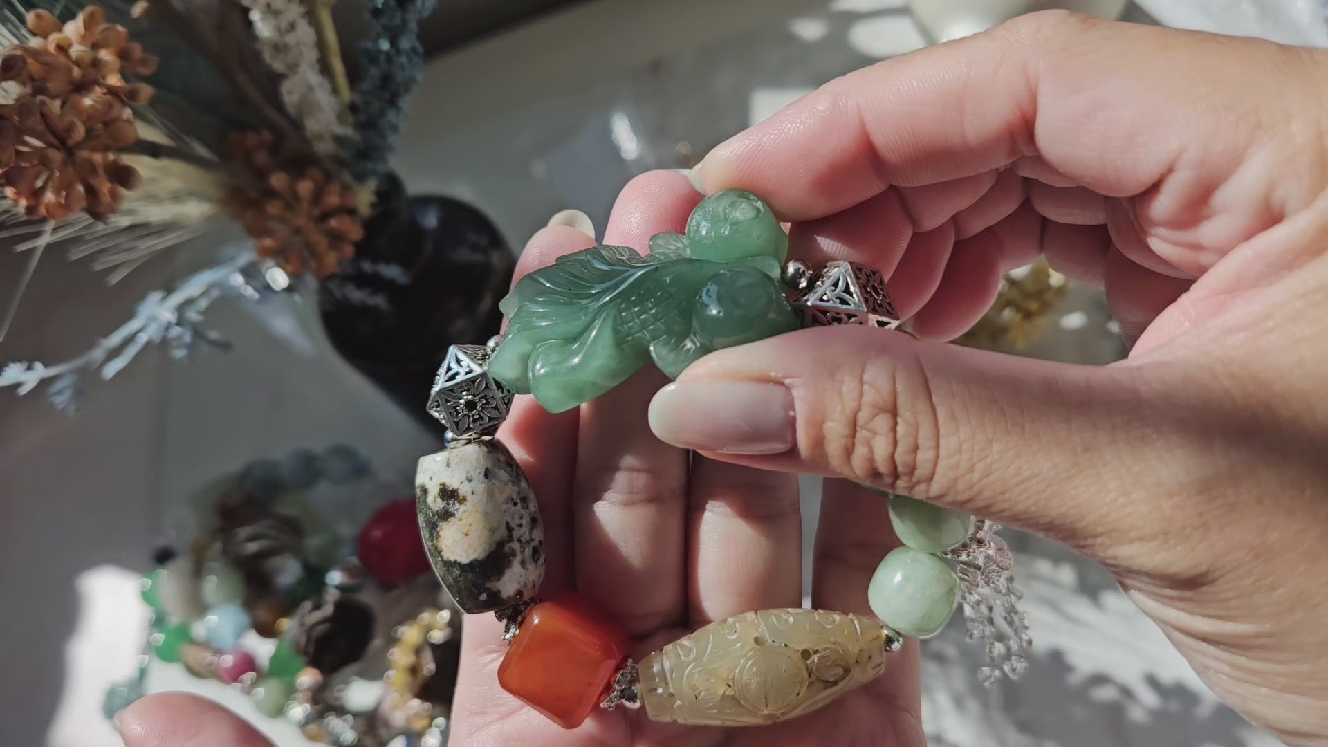 Green Aventurine Koi Fish Bracelet with Ocean Jasper, Vintage Jade & Carnelian